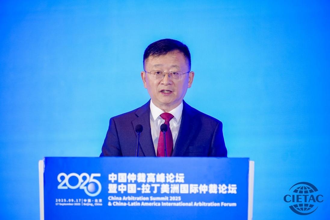 9月17日,2025中國仲裁高峰論壇暨中國—拉丁美洲國際仲裁論壇在北京舉辦。中國國際貿(mào)易促進(jìn)委員會(huì)副會(huì)長聶文慧、司法部副部長武增、最高人民法院審判委員會(huì)副部級(jí)專職委員王淑梅、環(huán)太平洋律師協(xié)會(huì)主席Michael CHU出席開幕式并致辭,聯(lián)合國國際貿(mào)易法委員會(huì)秘書長Anna JOUBIN-BRET發(fā)表視頻致辭。中國國際經(jīng)濟(jì)貿(mào)易仲裁委員會(huì)副主任兼秘書長王承杰主持論壇開幕式。