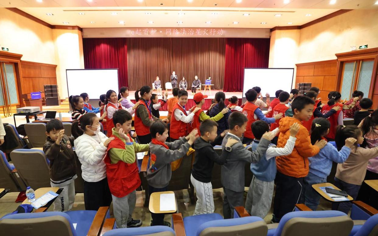深入解讀關于未成年人的網(wǎng)絡保護法律規(guī)定,共同探討如何在人工智能時代讓兒童安全觸網(wǎng),大學生帶領孩子們通過游戲的方式提升網(wǎng)絡素養(yǎng)……11月8日上午,北京市朝陽區(qū)人民法院第一法庭內外,歡樂聲此起彼伏,這是“e起首護·網(wǎng)絡法治星火行動”——青少年網(wǎng)絡普法與安全素養(yǎng)主題活動的現(xiàn)場。
