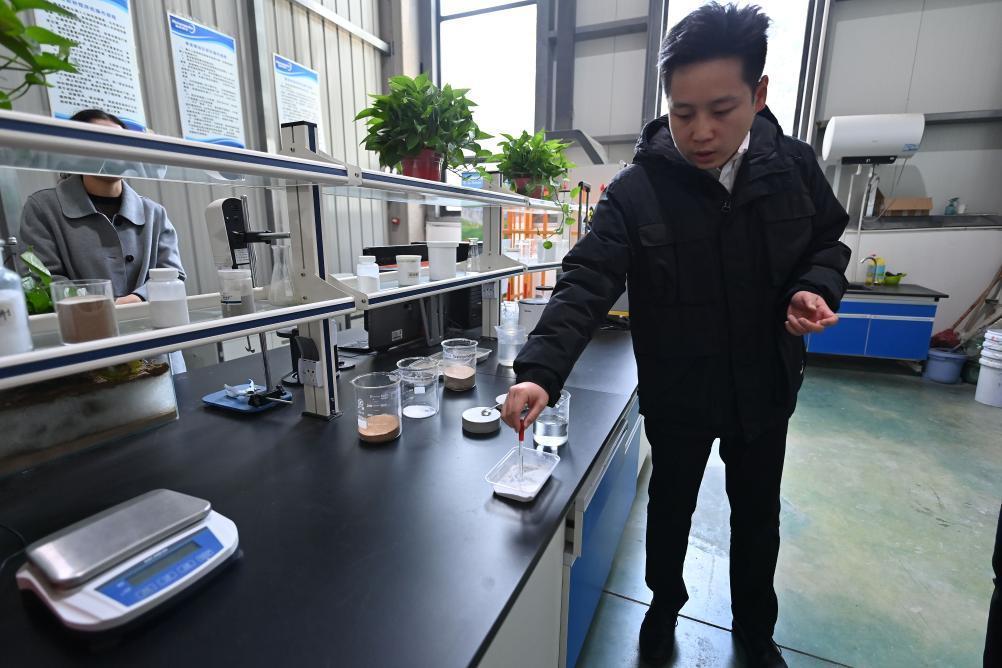 “1克粉末遇水可轉(zhuǎn)化為半固體凝膠,能鎖住1公斤左右的水分,幫助植物在較為干旱的土壤條件下生長?!痹谖挥陉兾魑飨绦聟^(qū)空港新城的產(chǎn)業(yè)園區(qū)里,湄南生物創(chuàng)始人盧威向記者展示了擁有自主知識產(chǎn)權(quán)的保水材料。