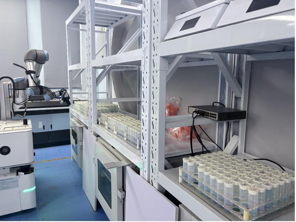 在實驗桌前,一名“智能科學家”正抬起結實的機械臂抓取試管,依次走過液體進樣臺、磁力攪拌臺、烘干工作臺,進行樣品稱重、攪拌、離心、烘干……