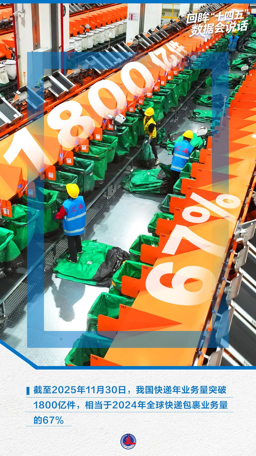 月均超160億件,單日最高7.77億件,每秒超6200件……1800億件快遞量質(zhì)提升,折射出中國經(jīng)濟(jì)蓬勃活力。