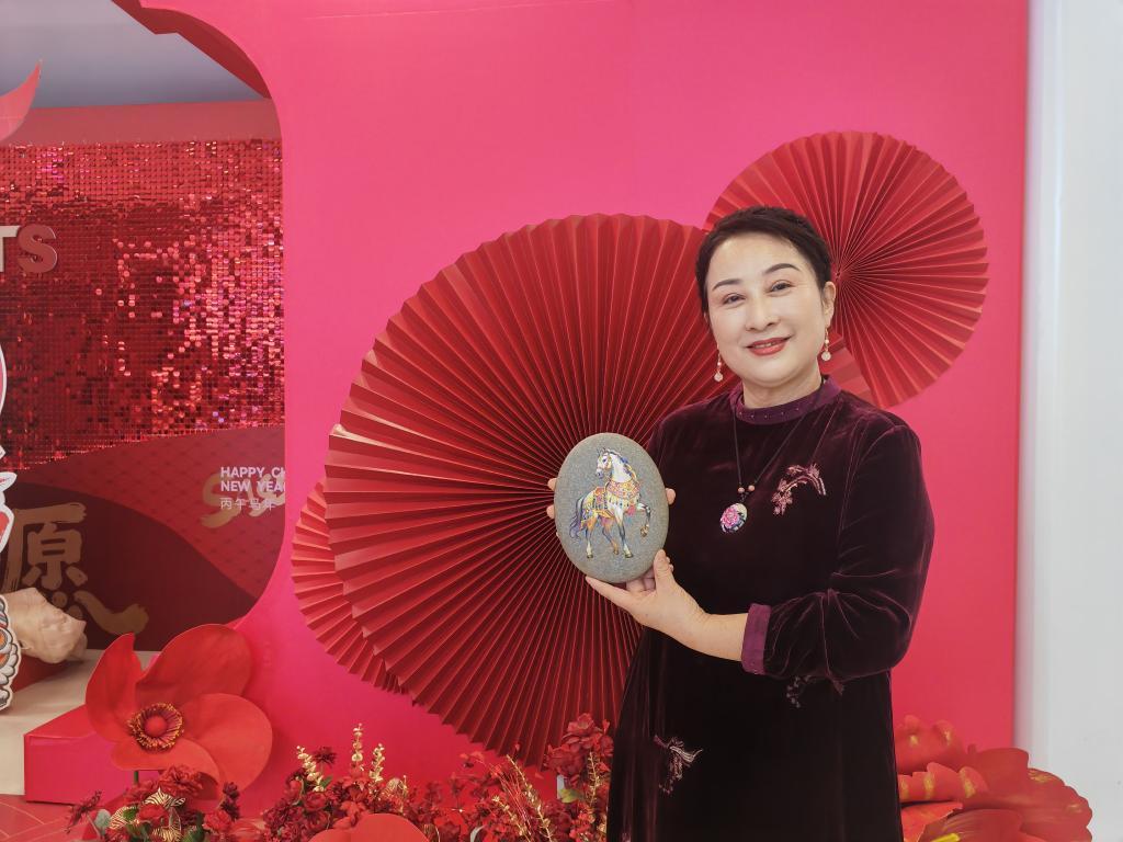 2月7日,宋笑珍攜帶自己專為馬年春節(jié)創(chuàng)作的黃河石畫系列作品亮相2026年“在寧夏·非遺過大年”文旅系列活動啟動儀式。形態(tài)各異、色彩不同的馬與黃河石有機(jī)融合,展現(xiàn)出蓬勃向上的精氣神?!拔覄?chuàng)作這些作品,就是希望能把非遺和年俗結(jié)合,給大家送去美好祝愿。”她說。