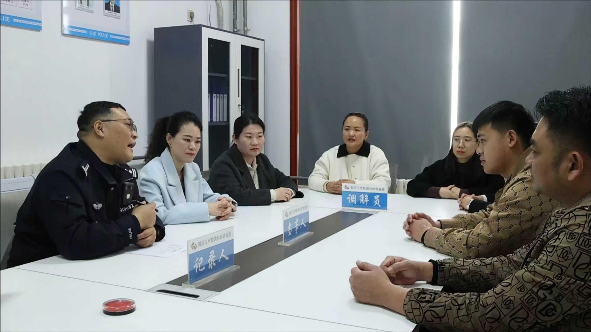 雙方你一言我一語,爭執(zhí)不休,情緒激動。孫成磊一邊安撫雙方情緒示意雙方冷靜,一邊耐心傾聽訴求。幾天前,趙女士多次報警,反映樓上鄰居每到夜晚孩子奔跑、嬉鬧的聲響嚴重影響休息,多次上門溝通均以爭吵收場。為徹底化解矛盾,孫成磊將雙方約到派出所,同時請司法所、律師事務(wù)所以及街道工作人員開展“三所聯(lián)調(diào)”。