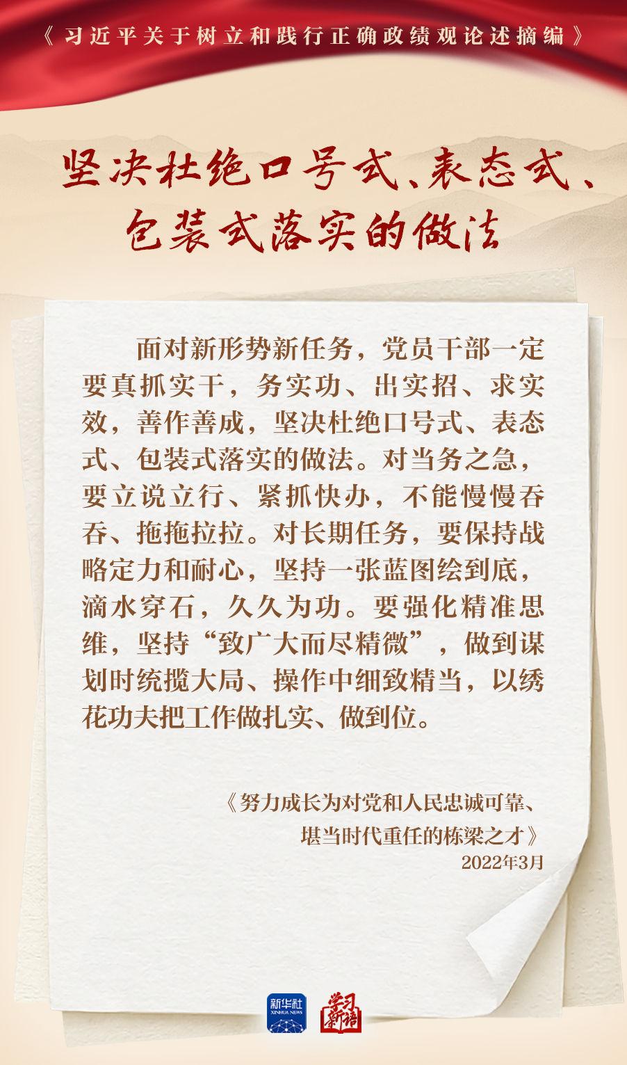 樹立和踐行正確政績觀學(xué)習(xí)教育正在全黨開展。真抓實干,是共產(chǎn)黨人的鮮明品格,也是成事之道。我們選取《習(xí)近平關(guān)于樹立和踐行正確政績觀論述摘編》一書中的相關(guān)重要論述,一起學(xué)習(xí)領(lǐng)會。