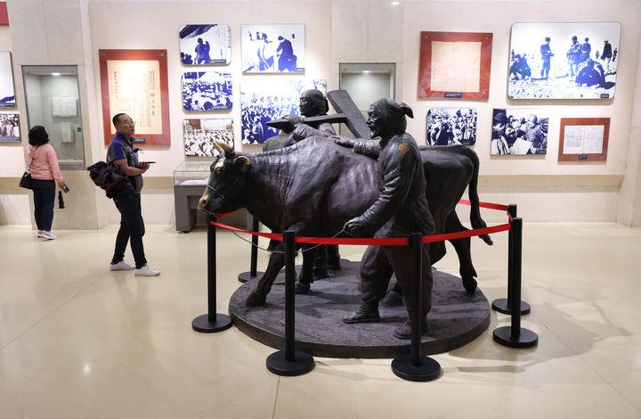2025年10月8日,游客在河北平山縣西柏坡紀念館參觀。新華社發(fā)(梁子棟攝)