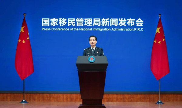 國家移民管理局新聞發(fā)言人、政策法規(guī)司司長陳杰在介紹相關(guān)情況。(國家移民管理局供圖)