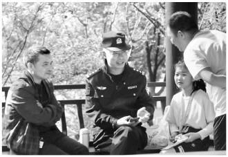 浙江省龍游縣公安局小南海派出所近日以“警務(wù)融治”建設(shè)為載體,創(chuàng)新組建護村、護企、護港、護林等專業(yè)義警隊伍。圖為林區(qū)警長為群眾開展普法宣傳。
