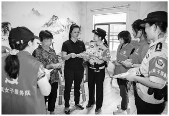 今年以來,廣東省興寧市公安局徑南派出所以擦亮忠誠的本色、平安和諧的底色、愛民法治的特色“三色”為思路引領,錨定創(chuàng)建全國“楓橋式公安派出所”目標,積極探索構建全時空守護平安、零距離服務群眾、多元化化解矛盾工作機制,全力提升派出所警務工作效能。圖為徑南派出所紅楓女子服務隊入戶宣傳反詐、禁毒等知識。