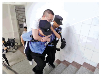 圖為湖北省襄陽(yáng)市公安局高新區(qū)分局民警將殘疾考生背進(jìn)考場(chǎng)。