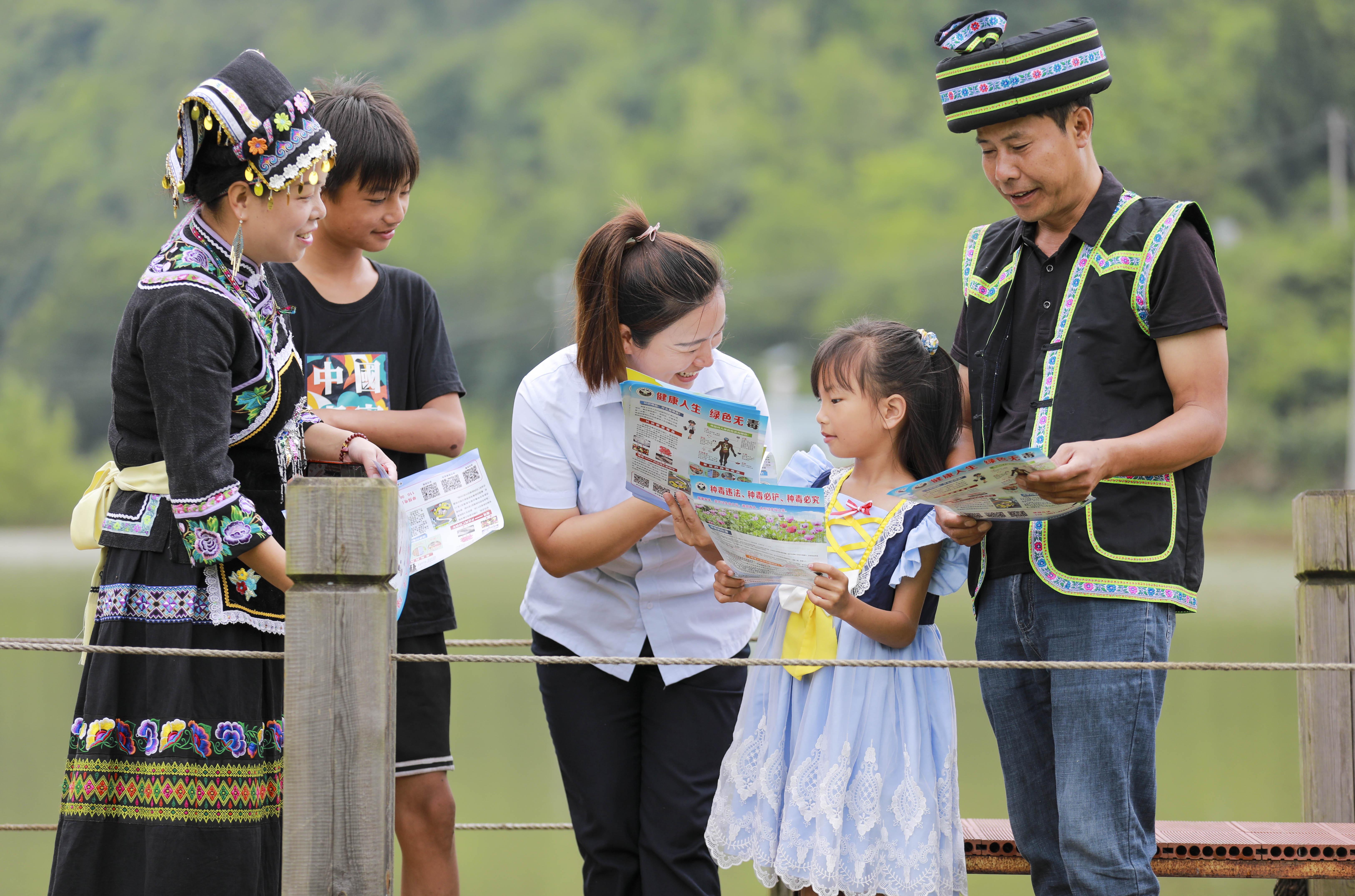 連日來,貴州省黔西市司法局鐘山司法所工作人員走進田間地頭、農(nóng)家小院,向村民講解禁毒、防溺水、未成年人保護法等知識,提高群眾尊法學(xué)法守法用法意識。圖為7月26日,司法所工作人員向鐘山鎮(zhèn)貓山村村民宣傳禁毒和防溺水知識。
