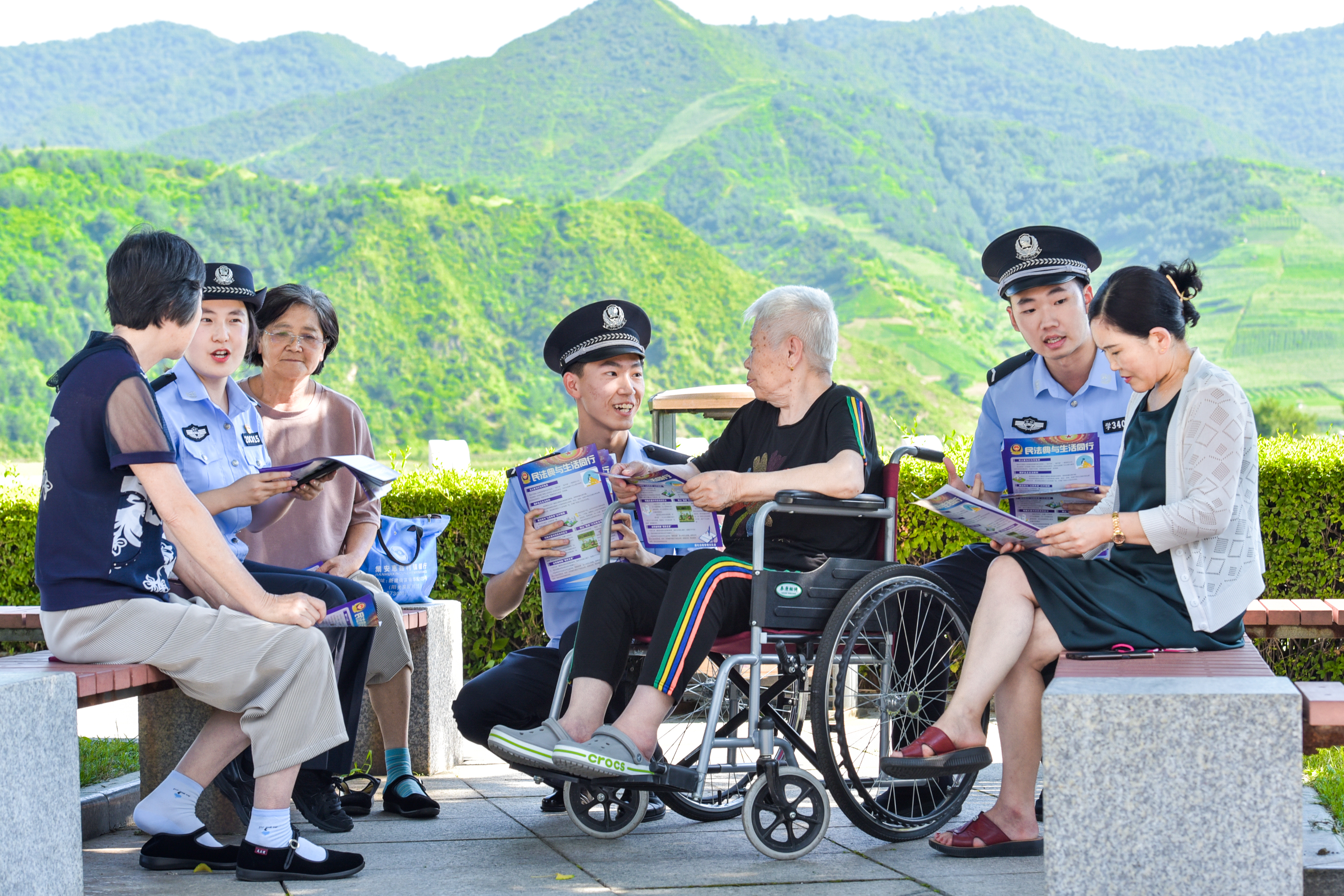 8月10日,來自警察院校的學員跟隨吉林省集安邊境管理大隊開發(fā)區(qū)邊境派出所民警深入轄區(qū)廣場、公園等場所開展法治宣傳活動,向廣大群眾普及反電信網(wǎng)絡(luò)詐騙法相關(guān)知識,增強防騙意識。圖為學員為群眾講解反詐知識。
