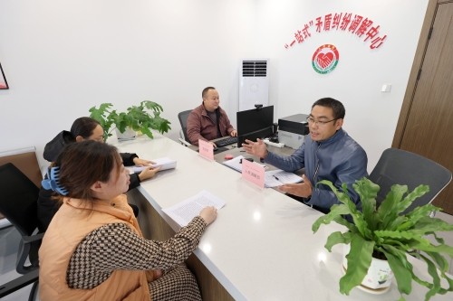 11月22日,江蘇省鎮(zhèn)江市潤州區(qū)司法局七里甸司法所工作人員正在調(diào)解一起鄰里糾紛。