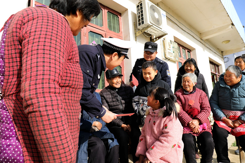 近日,安徽省舒城縣公安局交管大隊(duì)聯(lián)合柏林派出所走進(jìn)轄區(qū)柏林鄉(xiāng)秦橋村,開展“一老一小”交通安全宣傳,提高老年人、少年兒童的交通安全意識。圖為民警向村民宣講交通安全知識。
