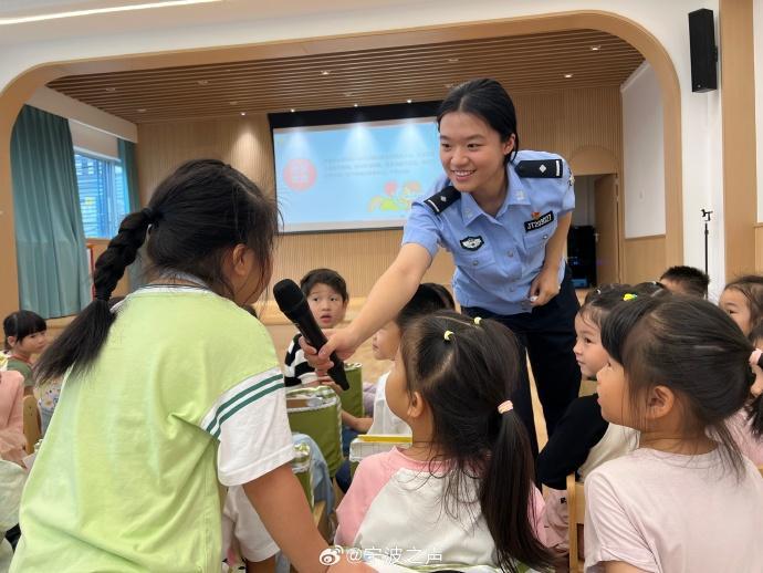近日,浙江省寧波市公安局鄞州分局福明派出所與轄區(qū)樂(lè)禾幼兒園共同舉辦主題為“防拐防騙,為愛護(hù)航”的安全演練活動(dòng)。民警用生動(dòng)有趣的故事和朗朗上口的兒歌,將防拐騙安全意識(shí)植入孩子們心間。圖為活動(dòng)現(xiàn)場(chǎng)。