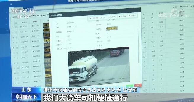 德州市交通運(yùn)輸綜合執(zhí)法支隊(duì)支隊(duì)長 杜守軍:所有經(jīng)過的車輛如果出現(xiàn)違章了,我們就記錄在案,形成我們的電子信用臺(tái)賬。這樣既起到警示教育的作用,又起到維護(hù)我們大貨車司機(jī)便捷通行。