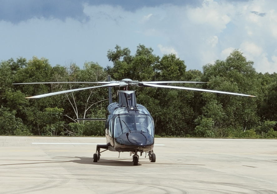 8月18日下午,記者在??谑械慕鹆趾?诩鬃油ㄓ脵C(jī)場,看到一架從墨西哥購進(jìn)的AW109E直升機(jī)運(yùn)抵此地,并完成安裝調(diào)試、交付運(yùn)營。