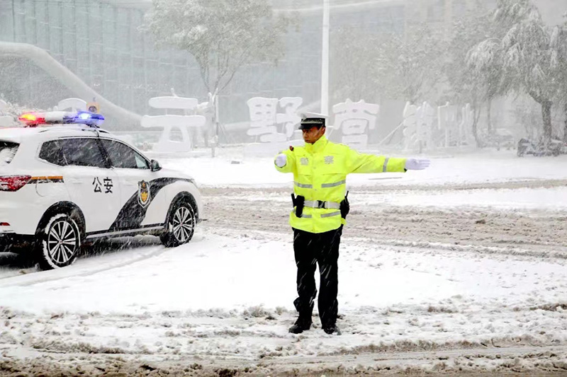 11月7日,正值立冬。山東省受強(qiáng)冷空氣影響,多地出現(xiàn)暴雪。雪情就是命令。山東省各級公安機(jī)關(guān)迅速作出部署,廣大公安民警輔警在崗在位,全力以赴戰(zhàn)雨雪、保安全。疏導(dǎo)交通、排除隱患、緊急救助……公安民警用堅(jiān)定的身影默默堅(jiān)守,在寒風(fēng)里傳遞著溫情,帶給群眾穩(wěn)穩(wěn)的安全感。