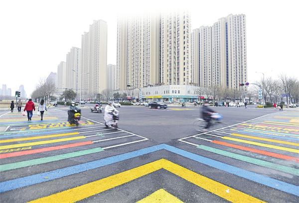 近日,濟(jì)南首條“彩虹琴鍵斑馬線”正式完工,亮相槐蔭區(qū)臘山河?xùn)|路與興福寺路交叉口。路口中間是“繽紛五色,匯流成章”的主題圖案,充分體現(xiàn)了泉城濟(jì)南“山、泉、湖、河、城”的元素。在斑馬線中間,有“我愛濟(jì)南”“有你在,我安心”“幸福路,慢慢走”等溫馨的話語,還增加了“安全帶,幸福帶”“把安全‘戴’(頭盔)回家”等交通安全的宣傳標(biāo)語。交警部門希望通過示范路口的“吸睛效應(yīng)”,將這里打造成一個(gè)高效率的交通安全宣傳陣地,進(jìn)一步增強(qiáng)廣大交通參與者的守法安全意識。(本報(bào)記者 崔健 攝)