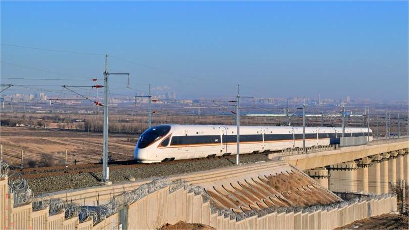 12月31日,G4798/5次復(fù)興號動車組列車行駛在集大原高鐵烏蘭察布至豐鎮(zhèn)北區(qū)間。