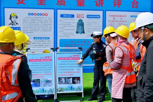 活動(dòng)中,民警通過現(xiàn)場宣講交通道路安全法、教授電瓶車頭盔正確佩戴方法、模擬酒駕述危害、講述典型案例防詐騙等環(huán)節(jié),為重點(diǎn)工程項(xiàng)目農(nóng)民工上了一堂精彩生動(dòng)的安全、防詐騙教育課。