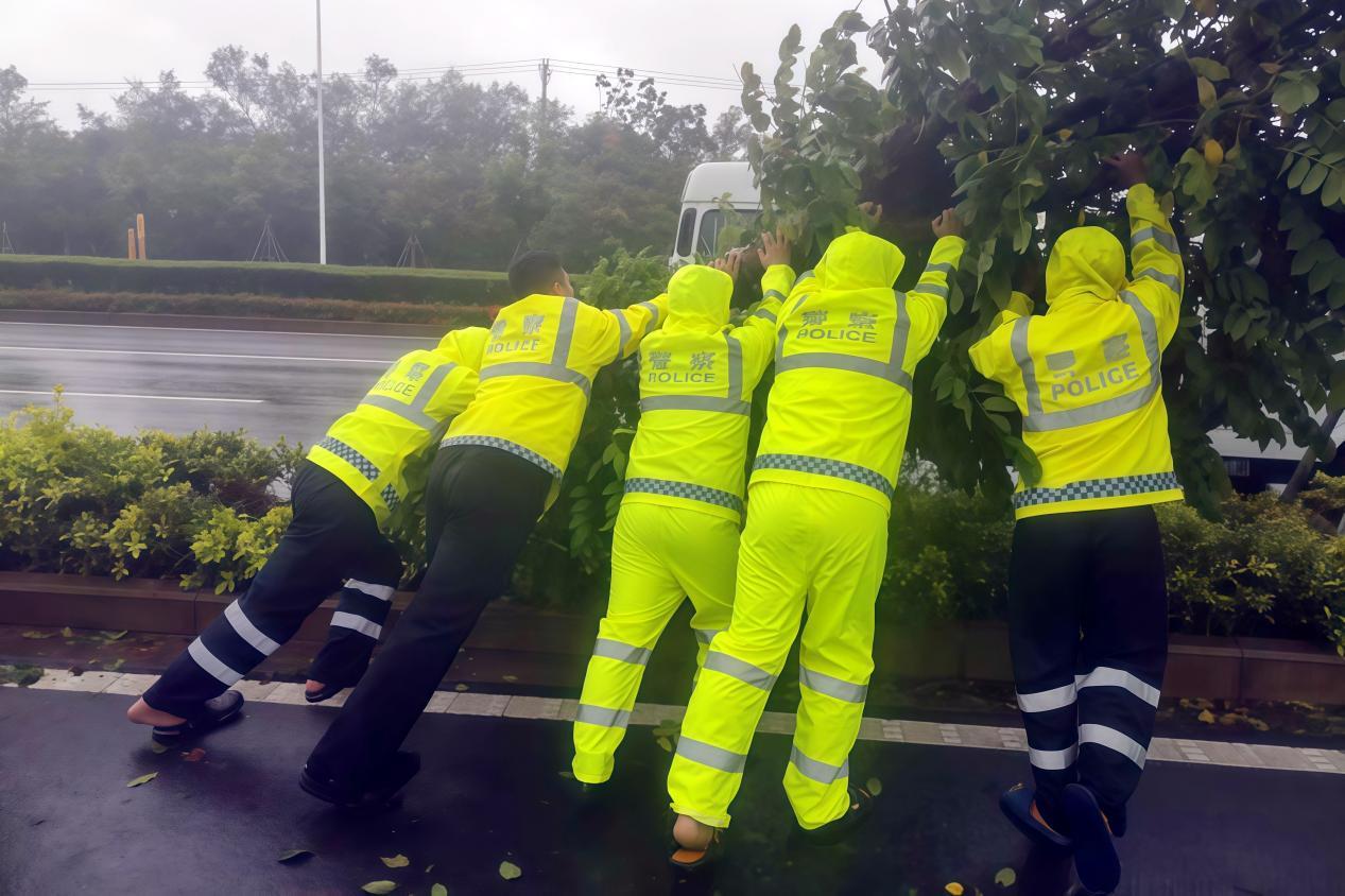 風(fēng)雨中,那一抹抹“熒光綠”格外醒目,扶正加固被吹倒的隔離護(hù)欄、徒手清理倒伏樹枝和路面雜物、及時(shí)疏通排水口確保道路暢通……暴雨模糊了視線,警笛穿透了風(fēng)聲,那抹熒光綠時(shí)而俯身搶險(xiǎn),時(shí)而挺立指揮,在白茫茫的雨幕中勾勒出最動(dòng)人的剪影。