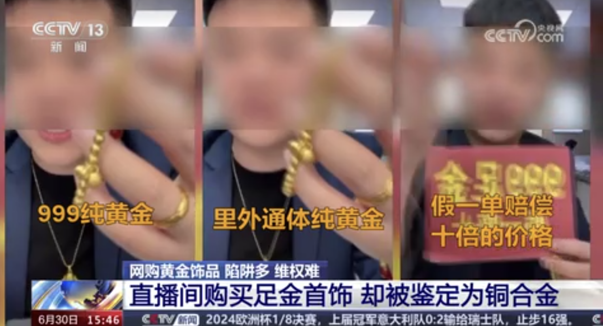 網(wǎng)購黃金飾品 陷阱多 維權(quán)難 直播間購買足金首飾 卻被鑒定為銅合金