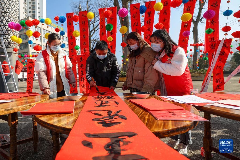 隨著春節(jié)臨近,各地開展各式各樣的寫春聯(lián)送祝?;顒?dòng),營造喜慶的節(jié)日氛圍。