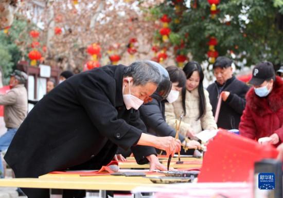 春節(jié)臨近,多地組織書法志愿者走進(jìn)社區(qū)、工地等場所,為人們書寫春聯(lián)和福字,迎接春節(jié)的到來。