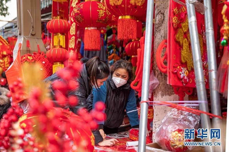 “?!弊?、中國結(jié)、新春對聯(lián)、兔年玩偶……琳瑯滿目的商品,熙熙攘攘的市場,討價還價聲此起彼伏,一派喜慶繁忙的熱鬧景象。