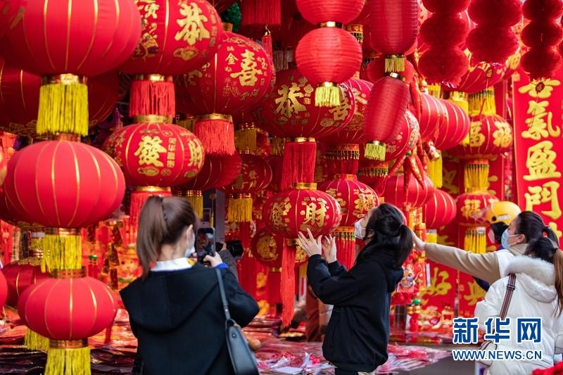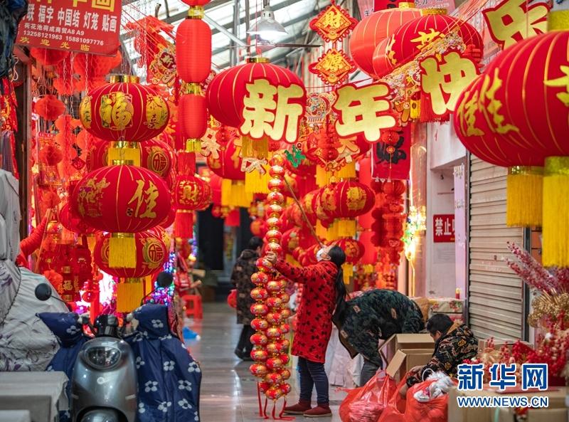 佳節(jié)將至,成都荷花池批發(fā)市場開啟了“春節(jié)模式”,各個店鋪喜氣洋洋,眾多市民前來逛街、辦年貨。