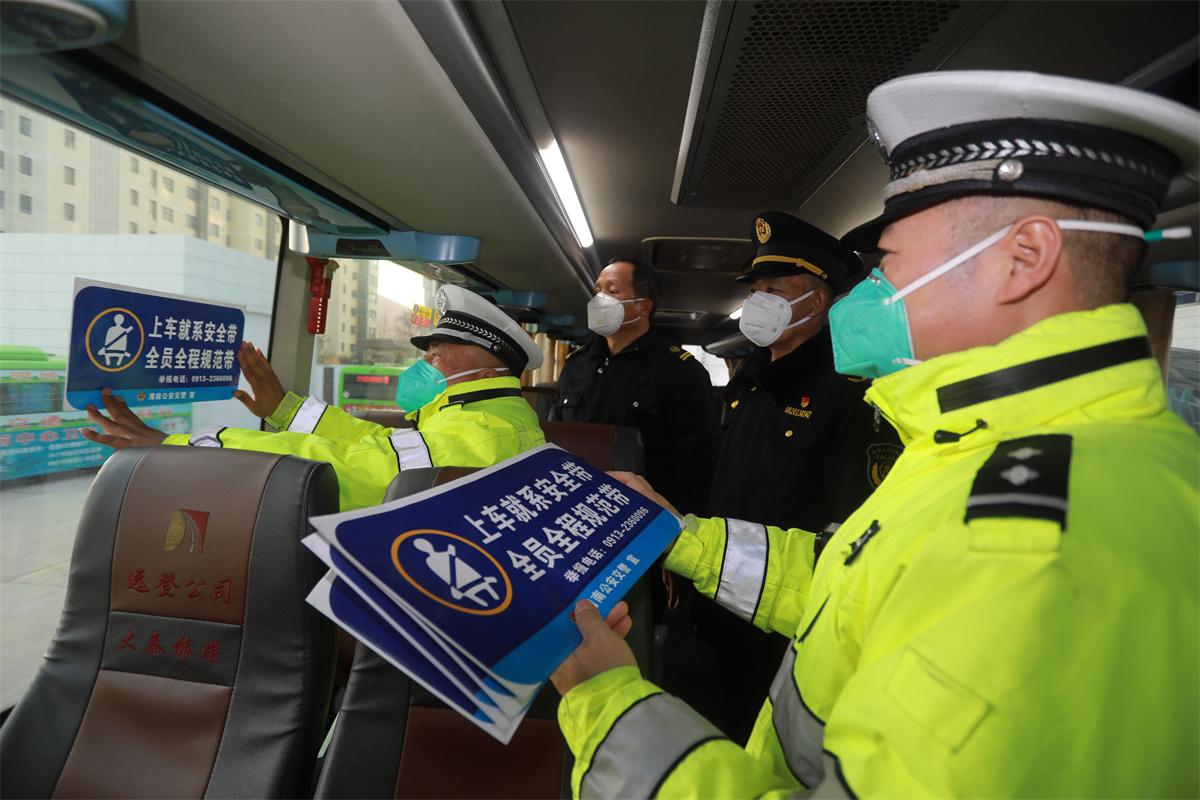 日前,陜西省渭南市澄城縣交警大隊聯(lián)合交通運輸部門走進(jìn)轄區(qū)客運公司,開展春運道路交通安全檢查與宣傳活動。對駕駛員的駕駛資質(zhì)、隨車安全設(shè)施設(shè)備進(jìn)行了檢查,在承運的車輛上全部粘貼“安全帶、禁止撥打手機(jī)”等交通安全提示貼。與往年不同的是,今年民警給運輸企業(yè)候車大廳張貼了“ 溫暖回家路”的主題宣傳剪紙,通過群眾喜聞樂見的形式宣傳平安回家注意事項。