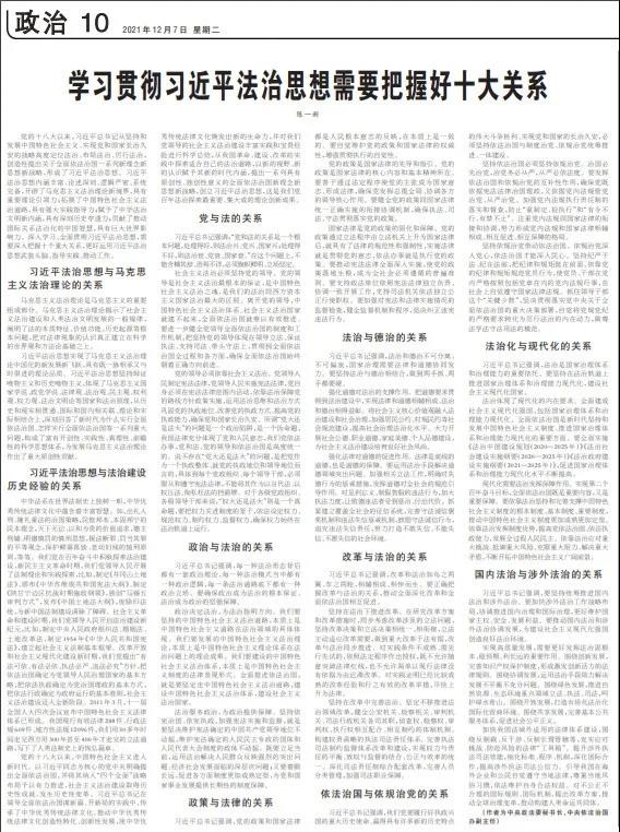 學(xué)習(xí)貫徹習(xí)近平法治思想需要把握好十大關(guān)系