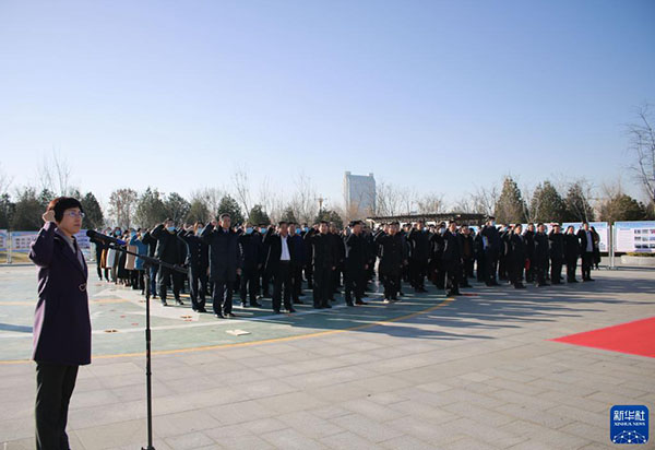 山東省濱州市舉行2021年國家憲法日領導干部憲法宣誓儀式(12月3日攝)。新華社發(fā)(劉偉 攝)