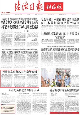 本報訊 記者趙婕 為充分發(fā)揮司法行政職能作用,指導和規(guī)范司法行政工作,更好滿足人民群眾的法律服務需求,7月8日,司法部發(fā)布4篇監(jiān)獄工作指導案例,分別是“上海市青浦監(jiān)獄沖動型罪犯朱某的矯正個案”“山東省泰安監(jiān)獄罪犯李某精準教育轉化案例”“眾志成城化危情 真情教轉挽靈魂——西青監(jiān)獄對罪犯楊某的管理和干預實例”“讓法治思維普照高墻‘最后一公里’——探索集中關押模式下的限減罪犯‘四步’教育法”,旨在深入貫徹習近平新時代中國特色社會主義思想特別是習近平法治思想,增強監(jiān)獄執(zhí)法透明度,提升執(zhí)法公信力,向社會展示監(jiān)獄教育改造工作成果,為指導規(guī)范全國監(jiān)獄工作提供可推廣、可借鑒的典型經驗。