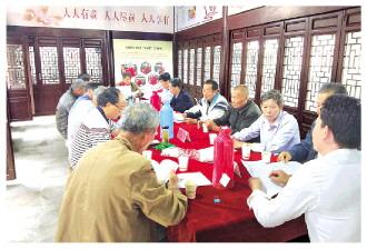 圖為溧陽八字橋村“百姓議事堂”的理事們就村廣場改造事宜進(jìn)行議事討論。 朱優(yōu)惠 攝