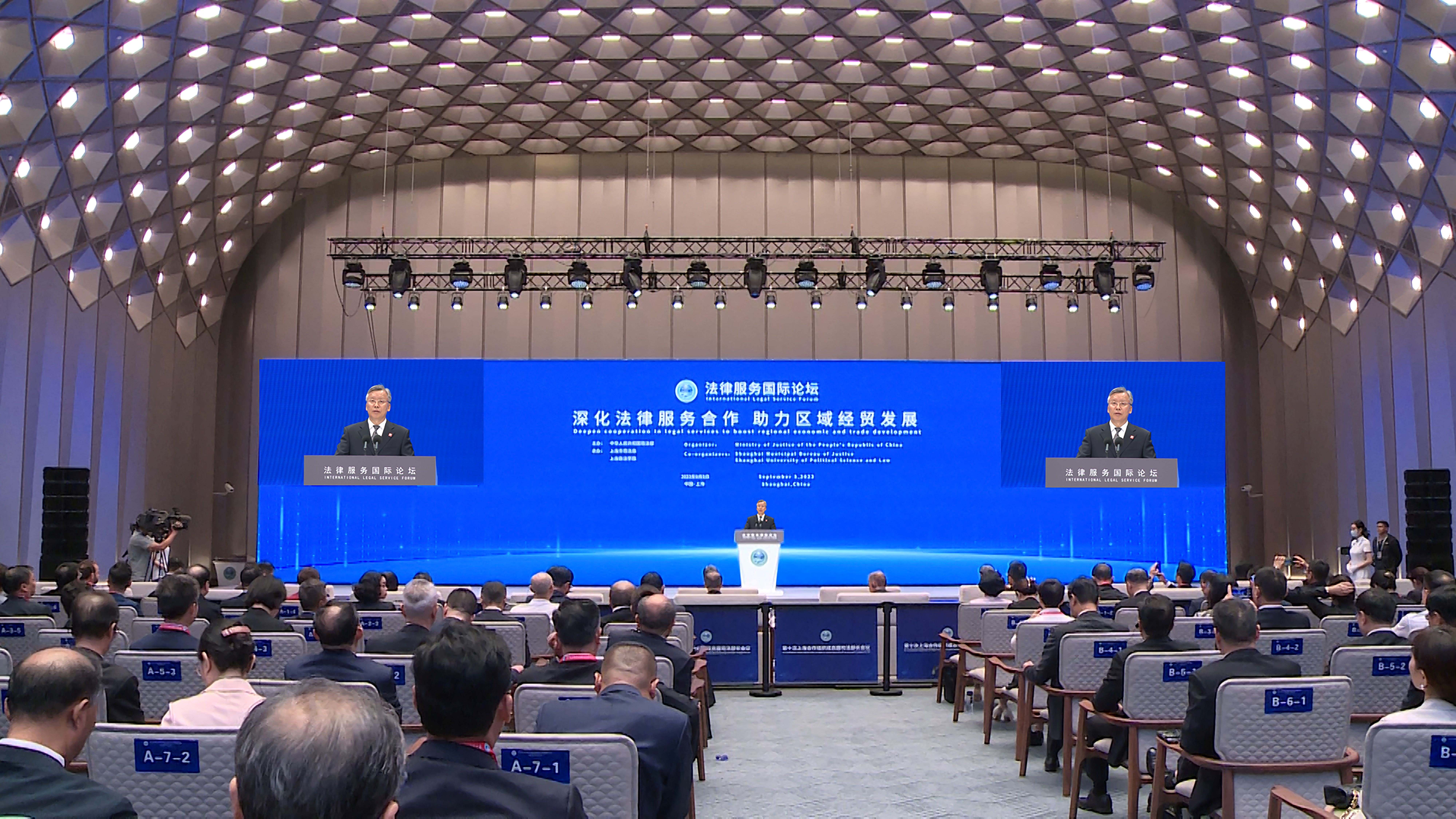 9月5日上午,司法部副部長王振江出席法律服務(wù)國際論壇并致辭。攝影 李光印