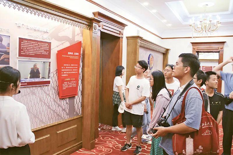 綏芬河國家安全教育展館面積約1100平方米,由序廳、總體國家安全觀、無名豐碑、周恩來展區(qū)等8個部分組成,展示了總體國家安全觀、黨的隱蔽戰(zhàn)線光輝歷史、當前斗爭形勢等內(nèi)容。李大釗、周恩來等老一輩革命家在綏芬河出入境蘇聯(lián)時曾秘密下榻于此。作為早期紅色秘密國際通道、秘密交通線掩護站點,展館建筑如今成為珍貴的紅色革命歷史遺址。圖為2023年8月15日,大學生在展館內(nèi)參觀學習。國安宣工作室供圖