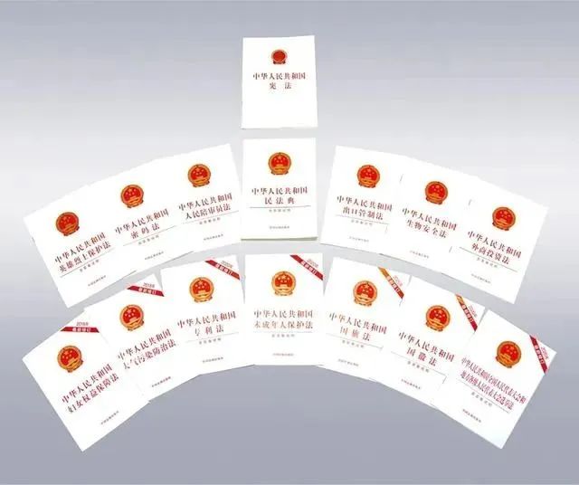 圖為十三屆全國(guó)人大及其常委會(huì)制定或修訂的部分法律單行本。