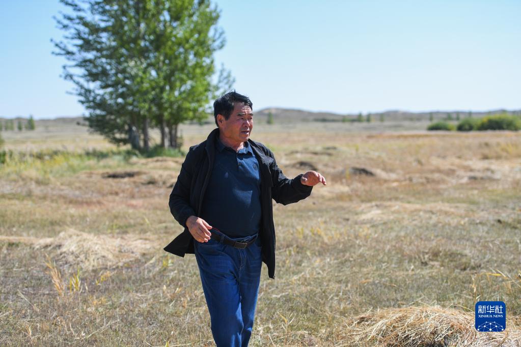 廷·巴特爾在查看自家草場(9月8日攝)。新華社記者 劉磊 攝