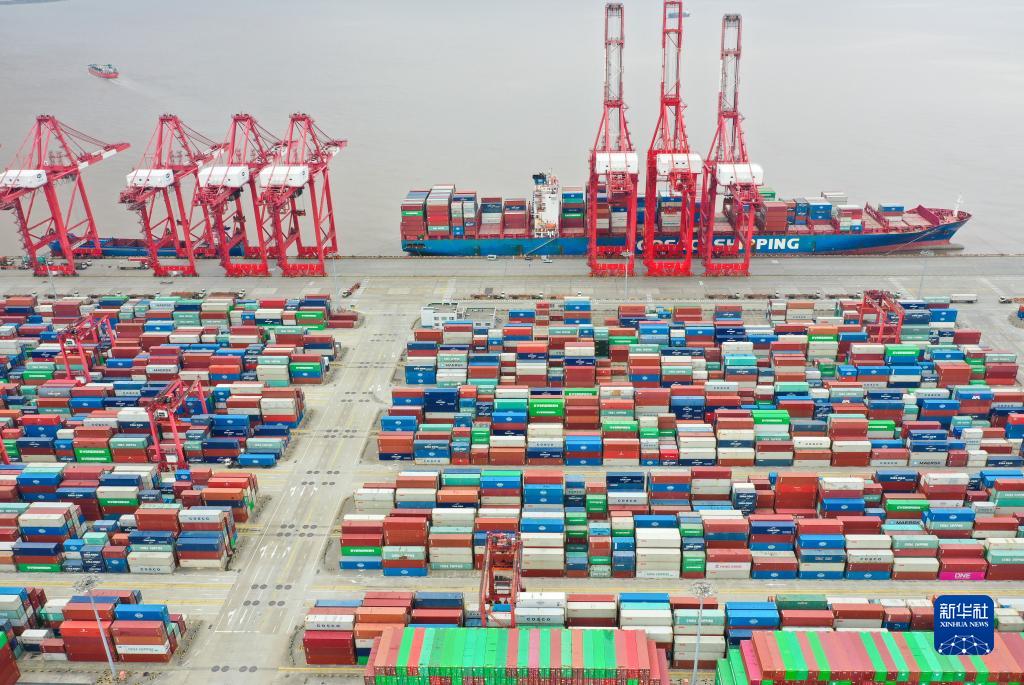 上海洋山港集裝箱碼頭(2022年4月15日攝,無人機(jī)照片)。新華社記者 丁汀 攝