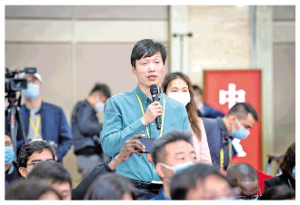 10月19日,黨的二十大新聞中心舉行記者招待會(huì)。圖為本報(bào)記者提問(wèn)。 本報(bào)記者 王建軍 攝