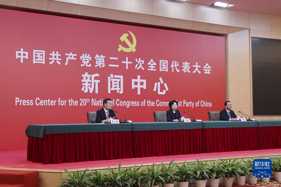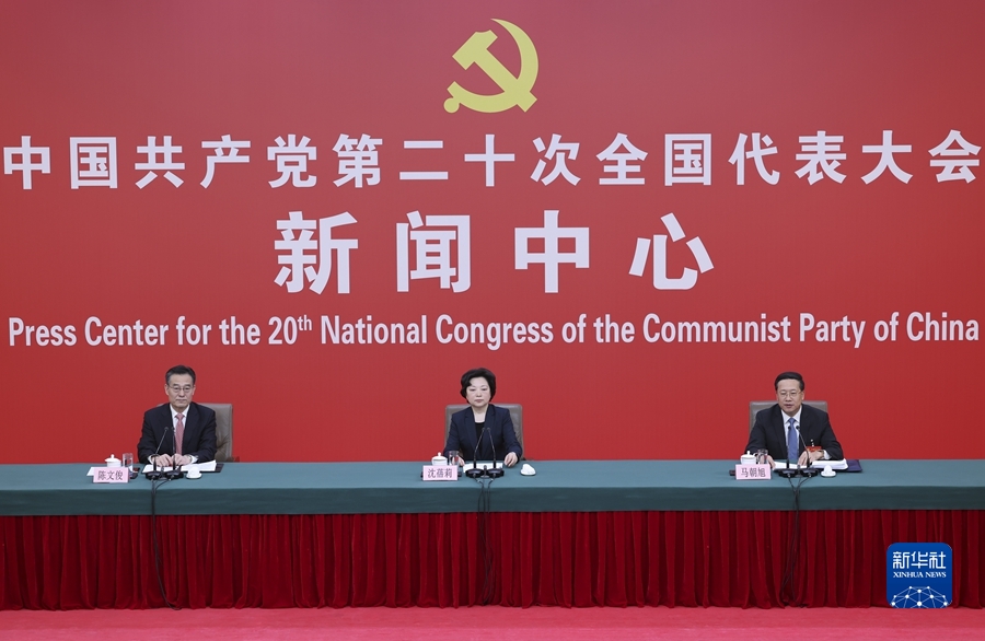 10月20日,中國共產(chǎn)黨第二十次全國代表大會(huì)新聞中心舉行記者招待會(huì)。中央對(duì)外聯(lián)絡(luò)部副部長沈蓓莉,外交部黨委委員、副部長馬朝旭圍繞“習(xí)近平外交思想指引中國特色大國外交開拓前行”主題與記者交流。 新華社記者 張玉薇 攝