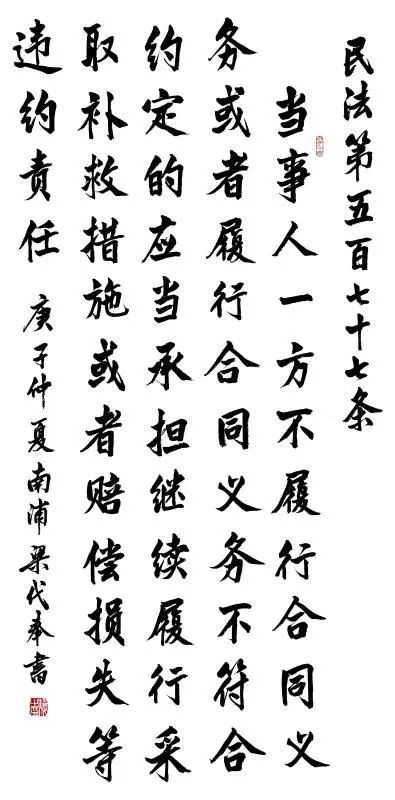 第五百七十七條 當事人一方不履行合同義務或者履行合同義務不符合約定的,應當承擔繼續(xù)履行、采取補救措施或者賠償損失等違約責任。