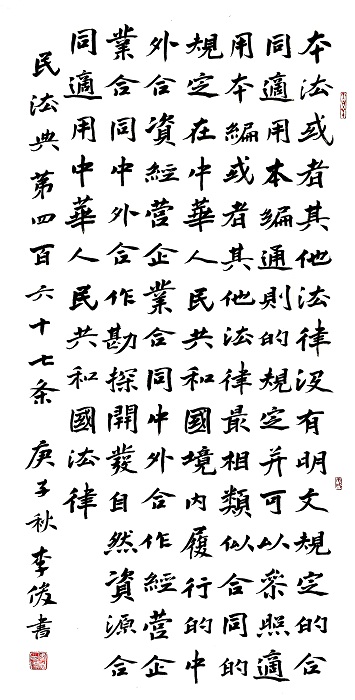 在中華人民共和國境內(nèi)履行的中外合資經(jīng)營企業(yè)合同、中外合作經(jīng)營企業(yè)合同、中外合作勘探開發(fā)自然資源合同,適用中華人民共和國法律。