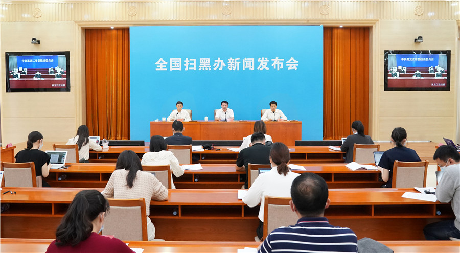 天津、黑龍江、貴州、新疆掃黑除惡專項斗爭領導小組負責同志通過視頻連線,向新聞媒體介紹了相關案件辦理情況,并回答記者提問。