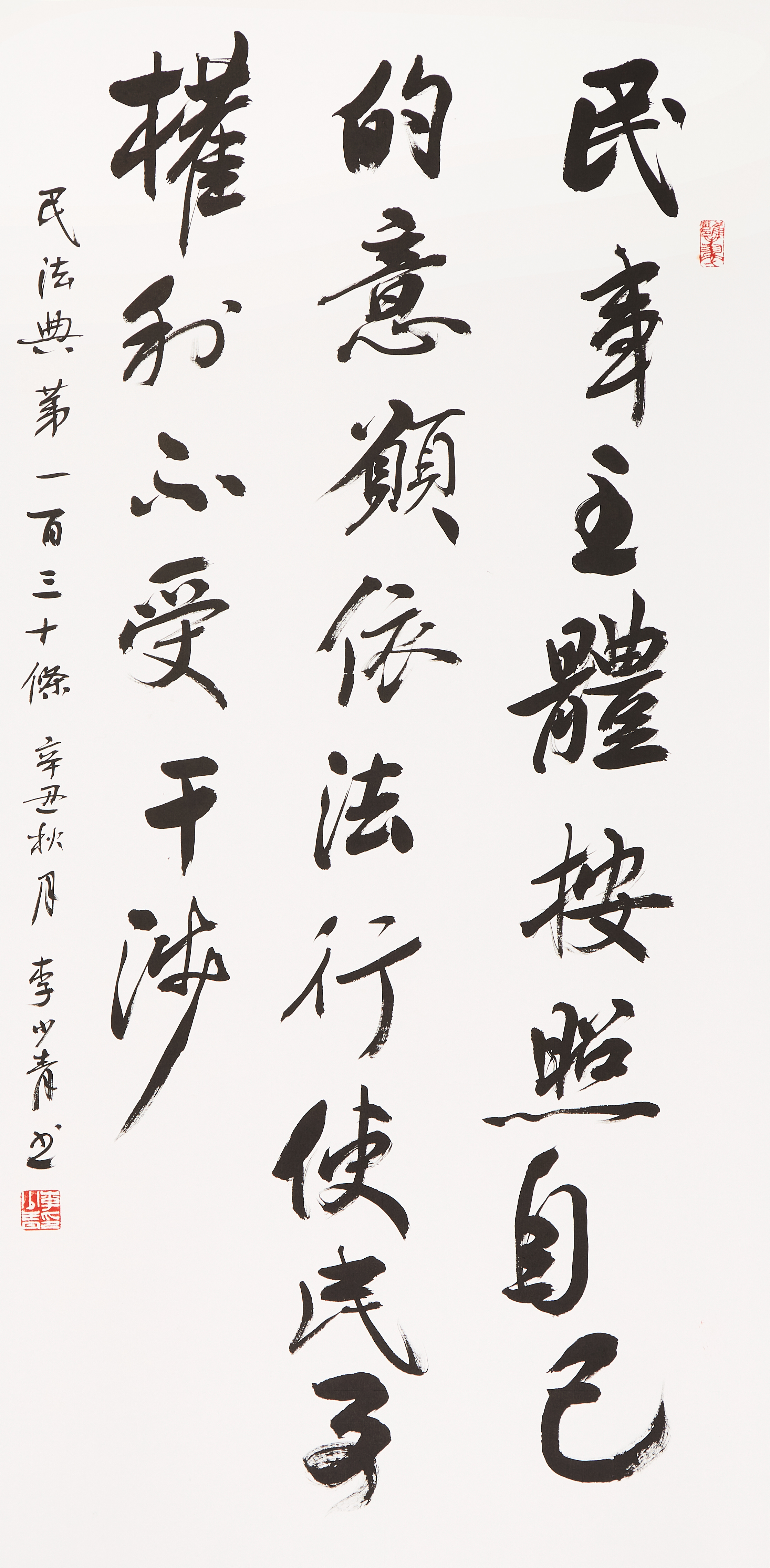“書(shū)·法”活動(dòng)以書(shū)寫(xiě)《中華人民共和國(guó)民法典》法條開(kāi)筆,未來(lái)將對(duì)準(zhǔn)更多的法律。