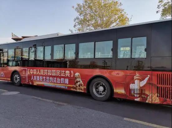在宣傳《民法典》公交車車體內(nèi)外,精心營造學習宣傳《民法典》的濃厚氛圍,將《民法典》公交專線主題設計為“《民法典》與生活同行”,車體以紅色為主基調(diào),圖文并茂,視覺沖擊力強。車內(nèi)兩側、坐椅靠背、車廂展板等位置進行了全方位包裝,車內(nèi)移動電視持續(xù)播放《民法典》宣傳短視頻,展示《民法典》中見義勇為免責、小區(qū)共有場地收入歸業(yè)主、夫妻共同債務如何界定等與百姓生活息息相關的法條。乘客在乘車的同時,可以感受到學習《民法典》的樂趣和必要性。