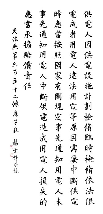 民法典第六百五十二條 供電人因供電設(shè)施計劃檢修、臨時檢修、依法限電或者用電人違法用電等原因,需要中斷供電時,應(yīng)當(dāng)按照國家有關(guān)規(guī)定事先通知用電人;未事先通知用電人中斷供電,造成用電人損失的,應(yīng)當(dāng)承擔(dān)賠償責(zé)任。