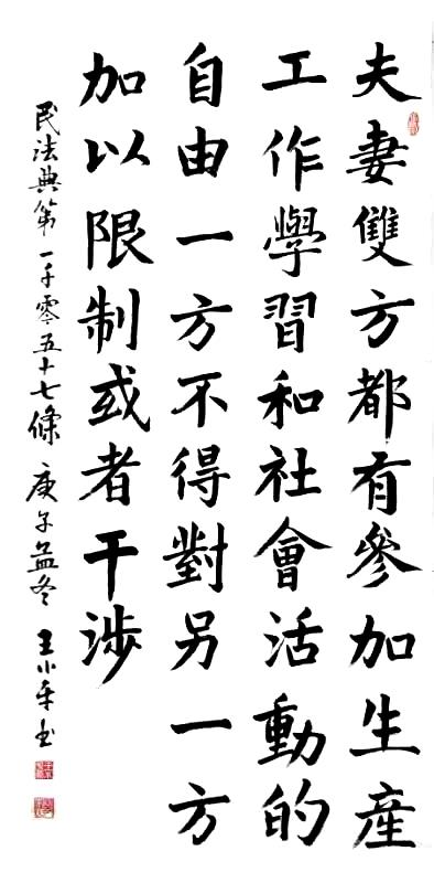 民法典第一千零五十七條 夫妻雙方都有參加生產(chǎn)、工作、學習和社會活動的自由,一方不得對另一方加以限制或者干涉。