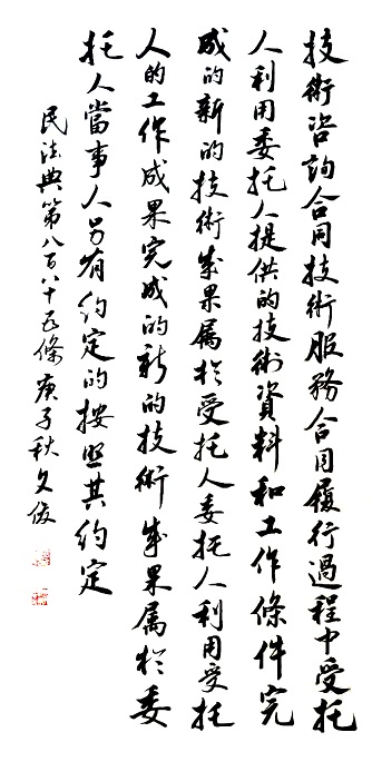 民法典第八百八十五條 技術(shù)咨詢合同、技術(shù)服務(wù)合同履行過程中,受托人利用委托人提供的技術(shù)資料和工作條件完成的新的技術(shù)成果,屬于受托人。委托人利用受托人的工作成果完成的新的技術(shù)成果,屬于委托人。當(dāng)事人另有約定的,按照其約定。